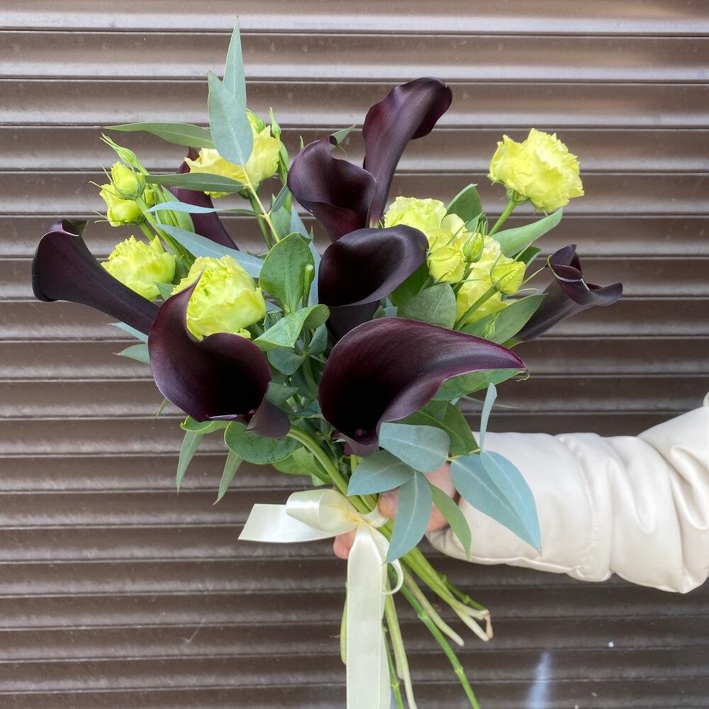 Роскошный букет из Черных калл и зеленой эустомы , роскошно дополнит образ утонченной леди